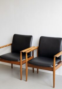 A hallmark of his work was the “floating” upholstered seat: a soft, suspended surface visually detached from the structural wooden frame. This innovation became a signature and is exemplified in two of his most iconic works — the Pelican Chair and Chieftain Chair. Both were created in a close partnership with the legendary cabinetmaker Niels Vodder, and together they produced a series of masterpieces that pushed the limits of craftsmanship.