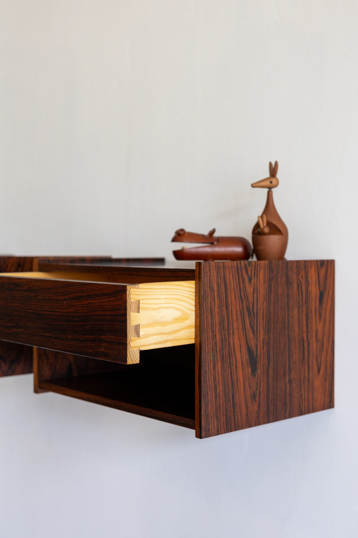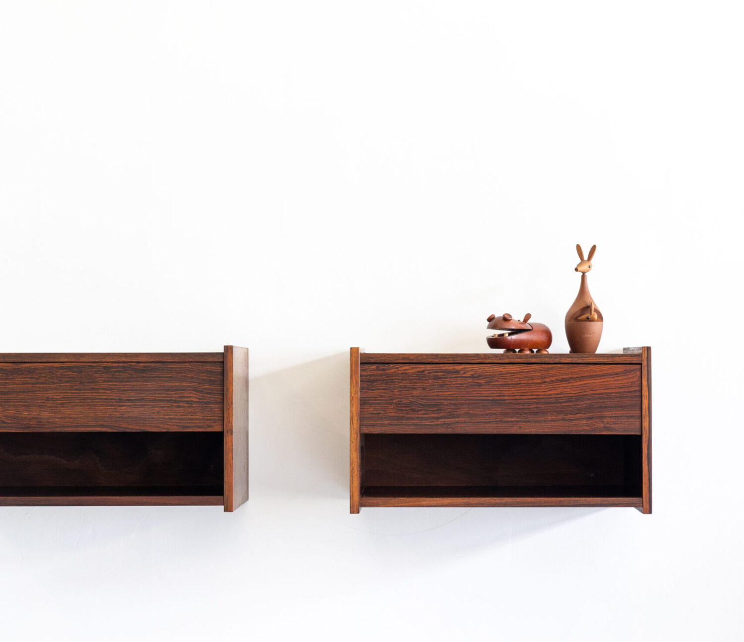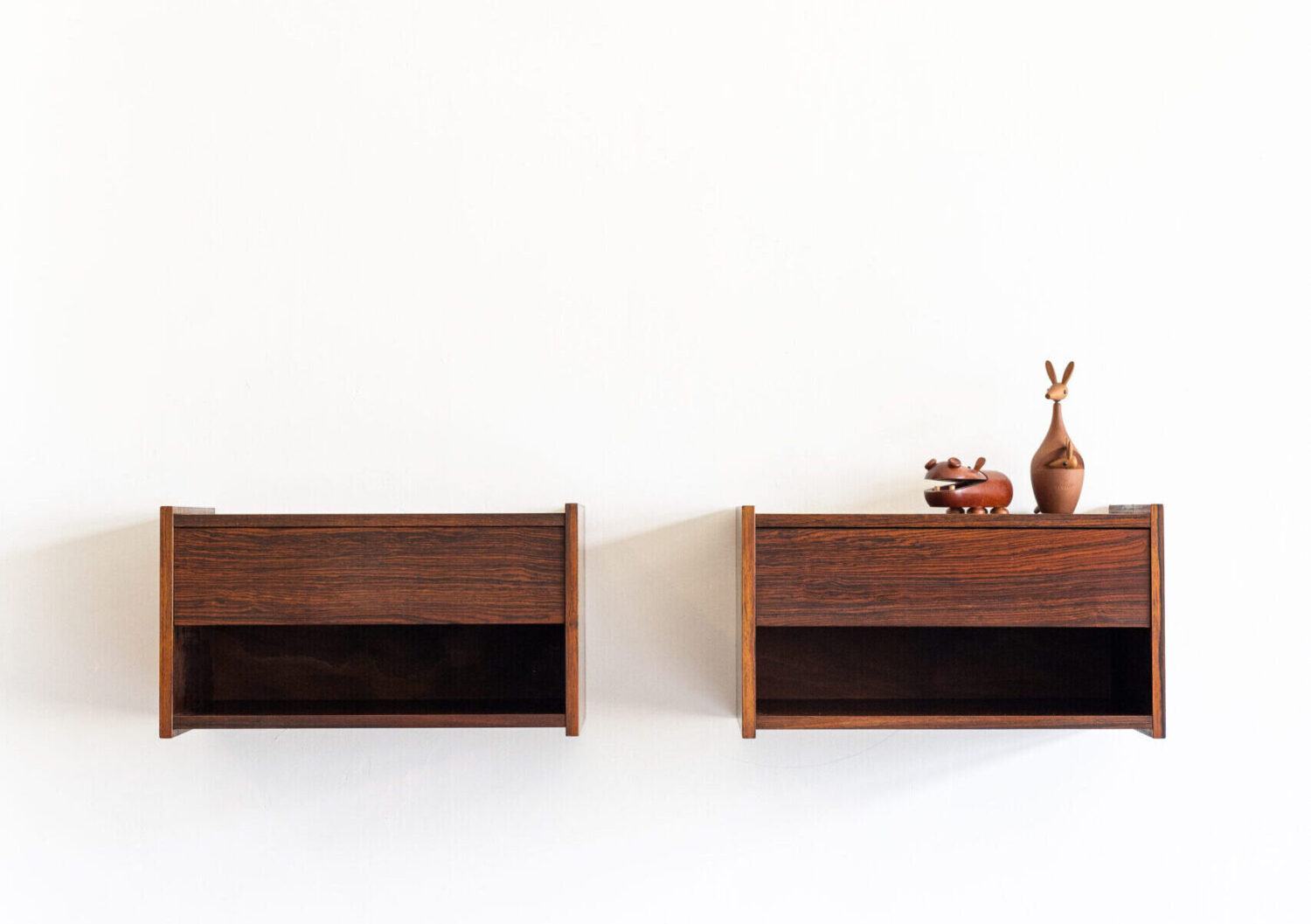 Featuring integrated handles and subtly raised edges, these floating shelves or nightstands with drawers embody both form and function. Whether used as a floating nightstand, an entryway statement piece, a compact side table, or even a minimalist bookshelf.