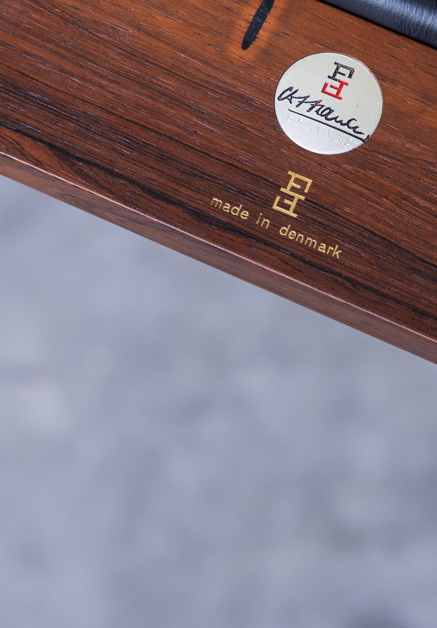 This is the Finn Juhl “Diplomat” desk chair / armchair, Model 209, featuring a sculptural solid rosewood frame. The model was created for diplomatic offices, hence the name “Diplomat”. The chair showcases Juhl’s signature organic lines and refined detailing, with gently curved armrests and a floating upholstered seat. A timeless and highly collectible piece from one of Denmark’s most influential modernist designers.